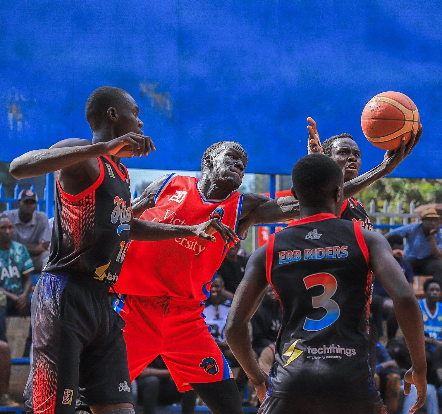 Entebbe Knight Riders was playing catch up for the remainder of the game but in the third quarter, Victoria University put it to bed.
